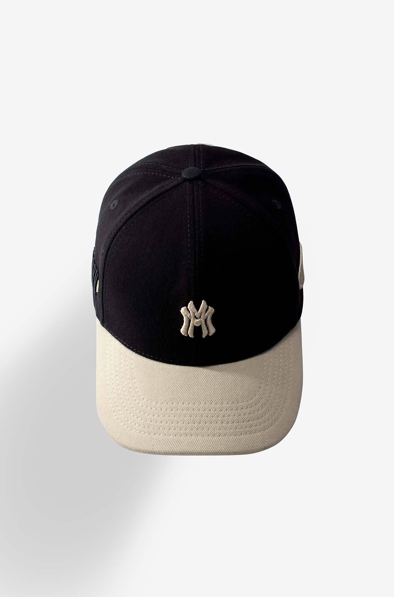 A embroidered 5-panel drill cap.